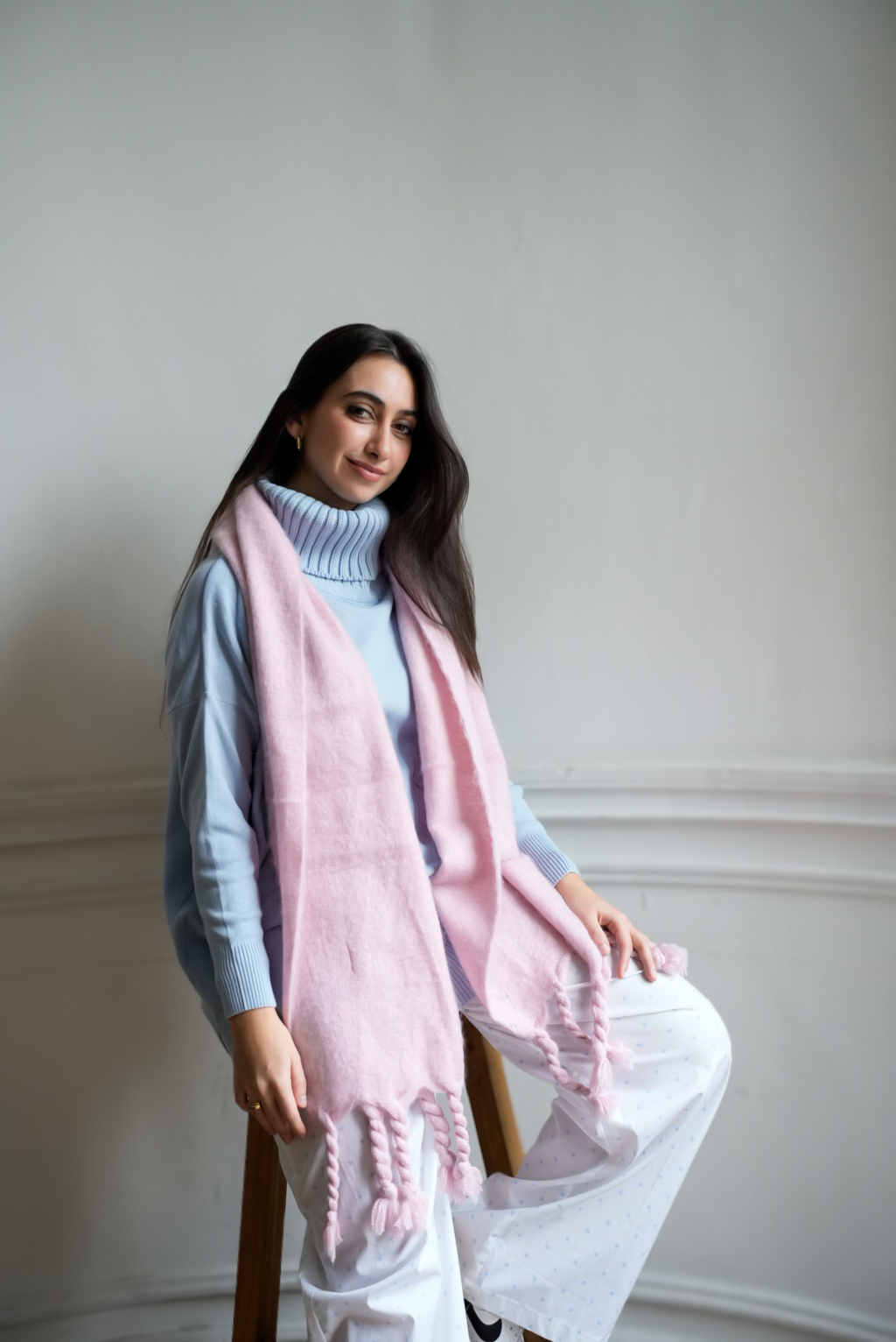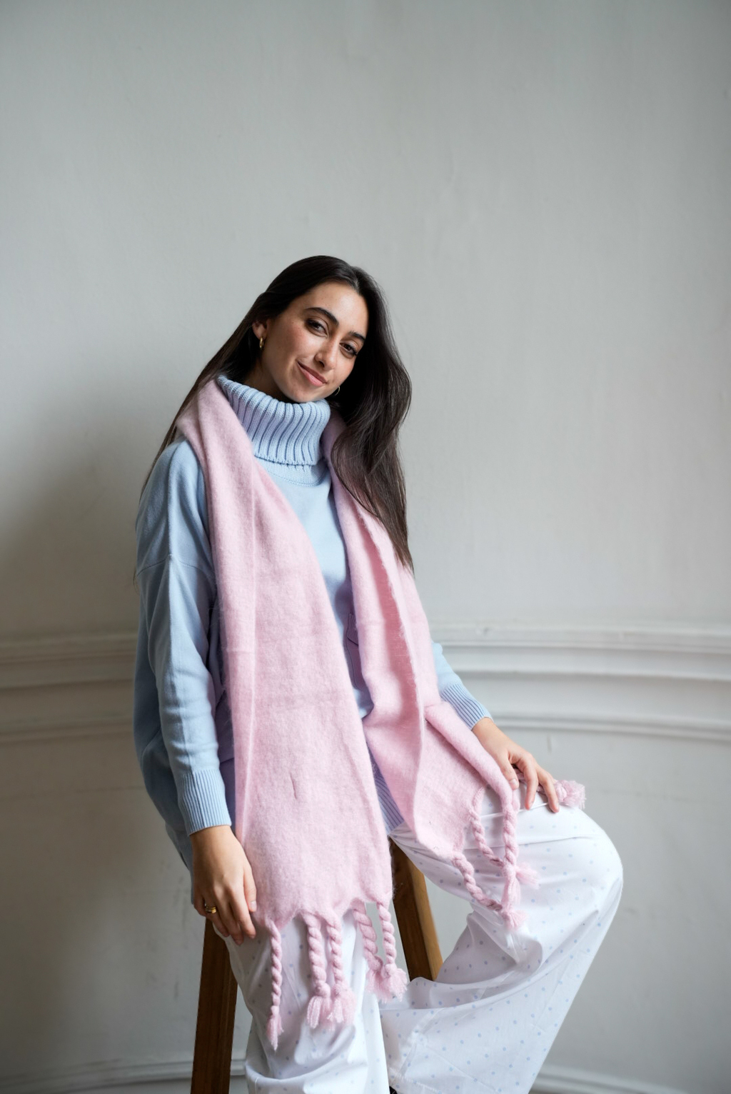 La más suave, la más icónica. Te envuelve como una caricia y combina con absolutamente todo tu guardarropas de invierno. Atemporal, ligera y llena de encanto, es esa bufanda que no vas a querer sacarte.