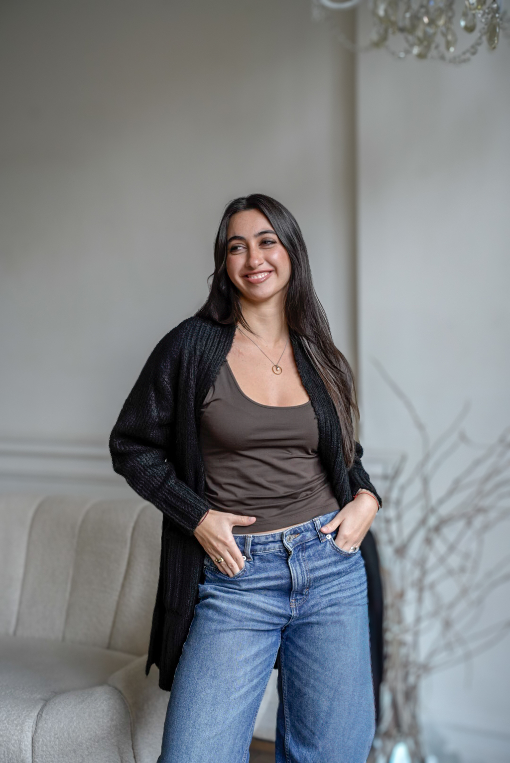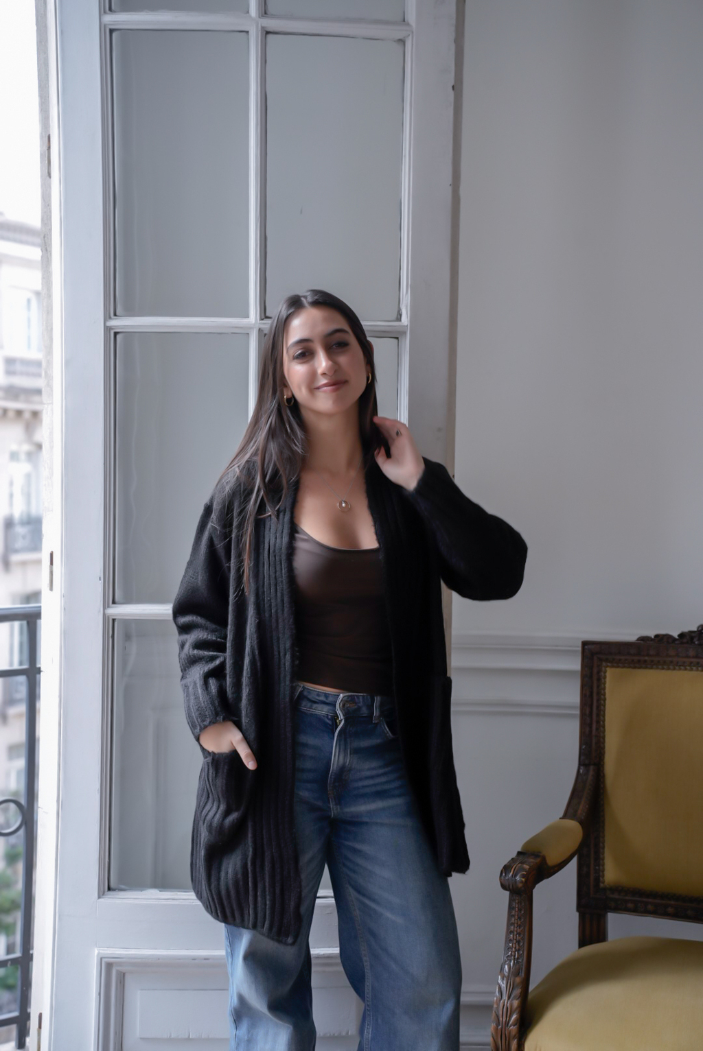 Atemporal, delicado y sutilmente sofisticado, el Serena es más que un cardigan, es un refugio cálido para días frescos, una pieza pensada para quedarse en tu vida mucho tiempo.