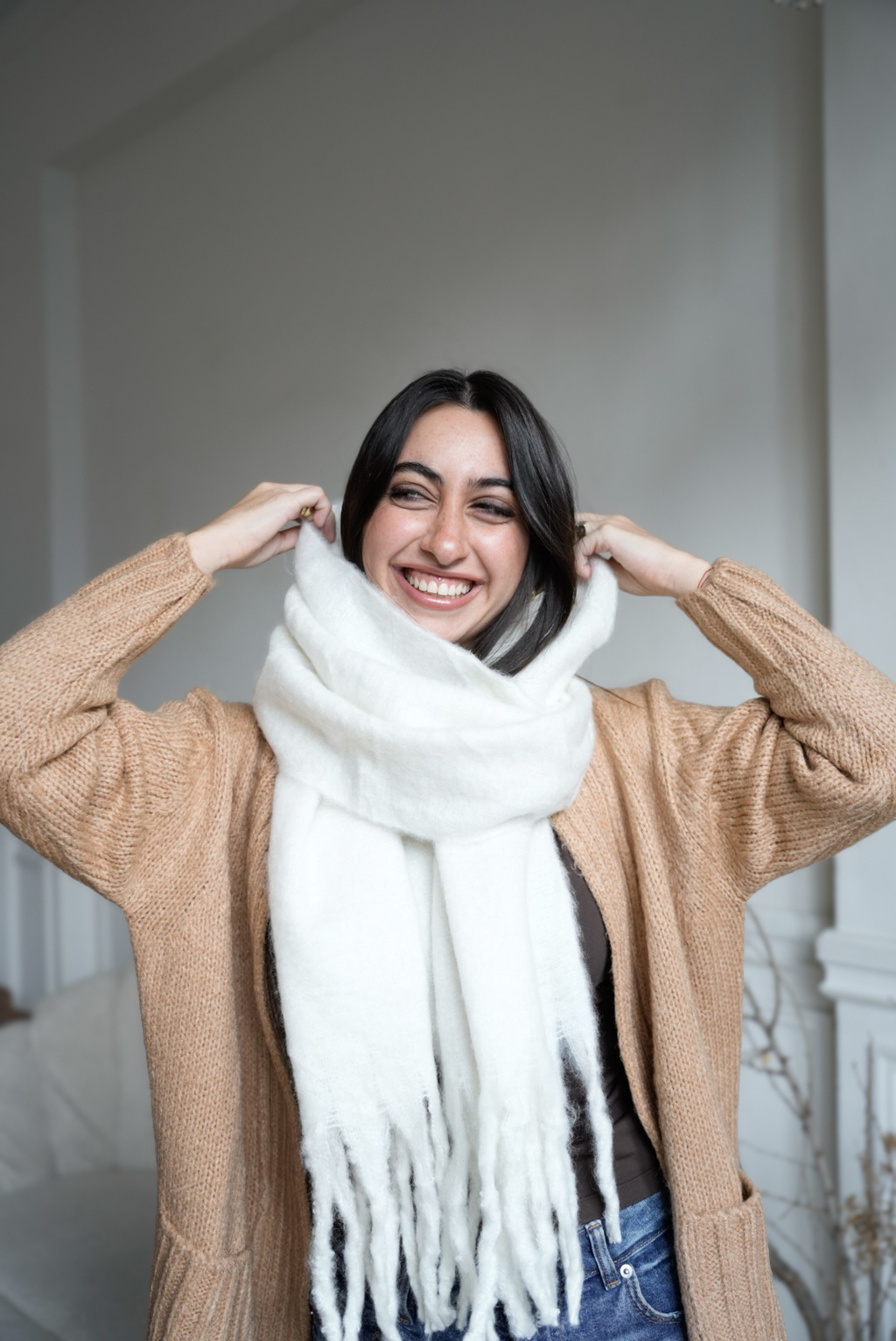 Confeccionado en pura lana suave, no pica, no hace bolitas y con el grosor justo para abrigarte sin pesar. Su textura es un mimo, su caída fluida envuelve con elegancia y sus bolsillos profundos suman comodidad real, de esa que se siente en el cuerpo y el alma.
